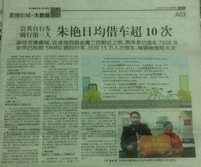 朱艷自己也不知道她究竟借了多少次,騎車多少分鐘??墒撬齾s在日積月累的騎行中刷新了公共自行車借騎紀錄。根據(jù)公共自行車管理中心統(tǒng)計,朱艷借車7936次,騎行時間為67182分鐘。