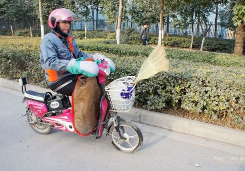 清晨6時(shí)50分,夜色還未褪去,一輛小型電動(dòng)車緩緩駛向阜師院新校區(qū)公共自行車站點(diǎn),騎車的人是阜陽(yáng)市公共自行車管理中心的巡檢員李莉,今年38歲。她的主要工作,是每天奔波于雙清路、二道河路、清河西路三條路段14個(gè)站點(diǎn),因此電動(dòng)車成了她最快捷的交通工具,車筐里還放置著一塊抹布、一罐水桶和一把小笤帚。“巡檢員的工作就是每天檢查站點(diǎn)的車輛、設(shè)備和保潔,并配合完成調(diào)度工作”。與記者簡(jiǎn)單地認(rèn)識(shí)后,李莉開始了一天的工作。