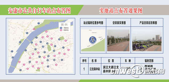據(jù)悉,安康市是國家第三批自行車試點示范市,城區(qū)計劃共建設50個站點,累計投放1200輛自行車。整個工程分兩期建設,前期建設25個站點,投放600輛自行車;擴容項目根據(jù)運行需要,再增設25個站點,投放600輛自行車。