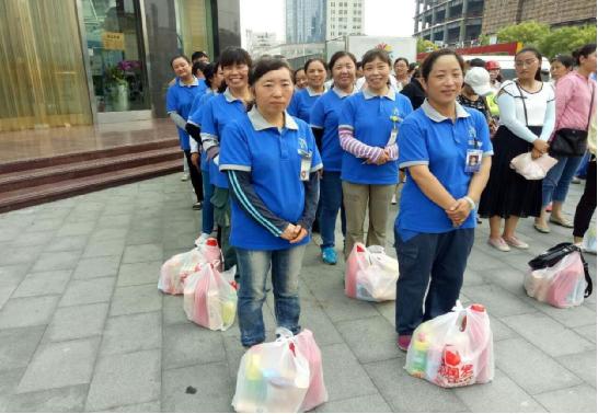 8月1日下午,“夏送清涼”——慰問一線員工活動(dòng)在彭城路銀座廣場舉行。市人大副主任、市總工會(huì)主席束志明,副市長陳輝,市總工會(huì)副主席王建民和市城管局副局長徐品、市城管局副局長李園來到現(xiàn)場,向奮戰(zhàn)在高溫一線的公共自行車調(diào)度巡檢人員等表示衷心感謝和慰問,現(xiàn)場他們將裝有毛巾、香皂、洗衣粉、洗發(fā)水、清涼油等防暑降溫和清潔必備物品送到了一線員工手上。