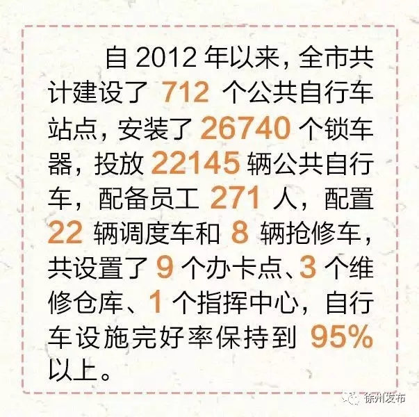 通過“住建部第三批城市步行和自行車交通系統(tǒng)示范項(xiàng)目獎(jiǎng)”驗(yàn)收,得到驗(yàn)收專家組高度評(píng)價(jià),認(rèn)為徐州市公共自行車服務(wù)項(xiàng)目具有示范和引領(lǐng)作用