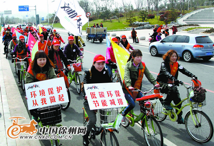 中國徐州網(wǎng)-彭城晚報訊 (記者 張傳寶) 昨日上午9點半,百余名文明閃客騎著自行車,匯聚到云龍山西門,上午10點,閃客們臉上貼著文明閃客logo,舉著精心制作的環(huán)保標語,環(huán)湖騎行宣傳環(huán)保拉開了帷幕。