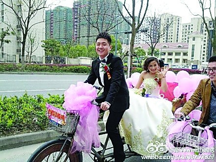 ssweetheart”因?yàn)橐粡埢槎Y圖片,在微博上引起“圍觀”,原因不僅是新郎新娘的婚車用上了三輪車,而且連送親的隊(duì)伍每人都騎上了公共自行車。這場(chǎng)綠色、低碳、環(huán)保的婚禮被很多網(wǎng)友和市民津津樂(lè)道,公共自行車的這一“新用途”也成為焦點(diǎn)。